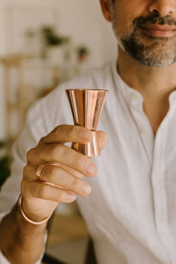 El cobre, además de su belleza estética, posee una cualidad especial: es un excelente conductor de calor. Esto significa que mientras estás midiendo tus ingredientes, el cobre ayudará a mantenerlos frescos y a la temperatura adecuada. No hay nada mejor que saborear un cóctel perfectamente equilibrado y refrescante.